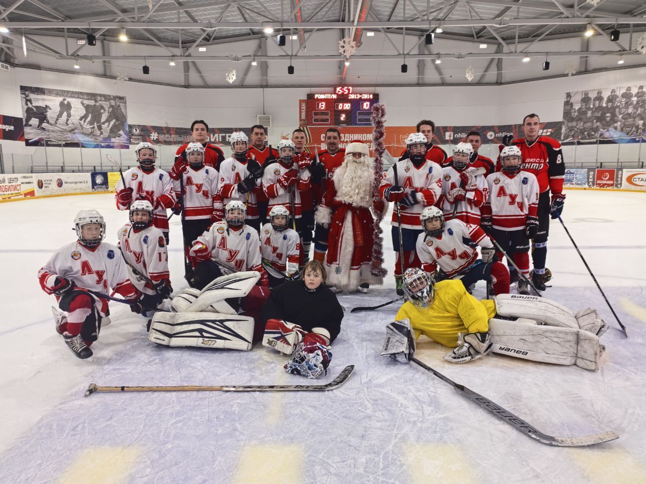 Сначала на лёд вышли юные хоккеисты 2015-2016 г.р. Им противостояла команда, состав которой был сформирован из родителей и тренерского штаба. Матч закончился со счётом 7:7.Следом состоялась игра хоккеистов 2013-2014 г.р. Формат матча повторил первую игру. Итоговый счёт 13:10.