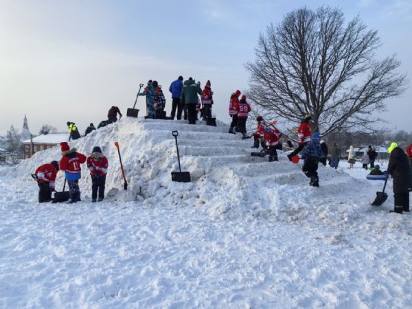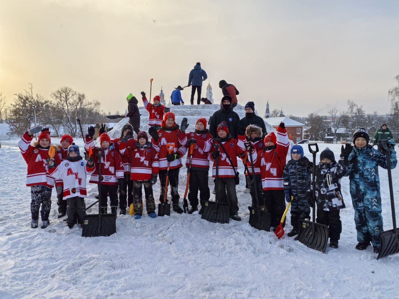 Масштабное строительство привлекло множество участников. В создании горки приняли участие: сотрудники служб благоустройства Сергиево-Посадского городского округа, работники нашего ледового комплекса, тренеры и воспитанники отделения хоккей спортивной школы «Центр», местные жители и многие другие.