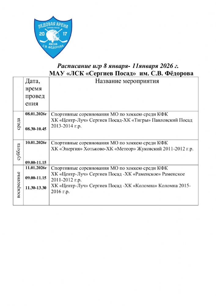 расписание игр 08 января-11 января 2026 г.