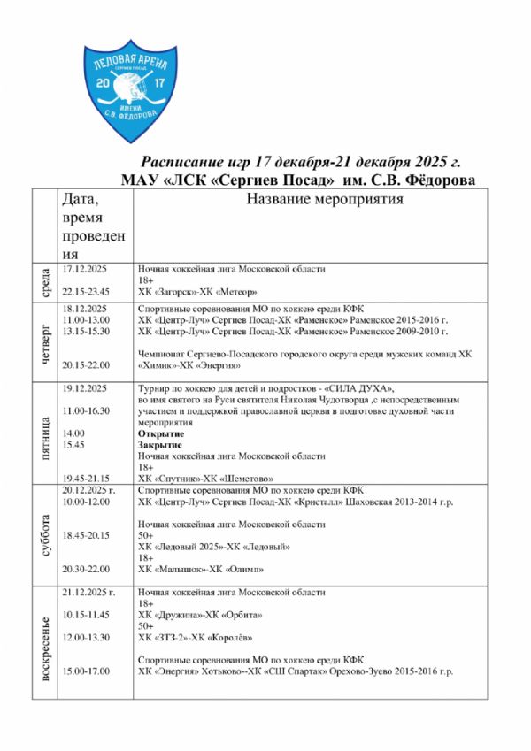 расписание игр с 17 по 21 декабря 2025 г.