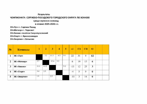 Результаты ЧЕМПИОНАТА СЕРГИЕВО-ПОСАДСКОГО ГОРОДСКОГО ОКРУГА ПО ХОККЕЮ среди мужских команд