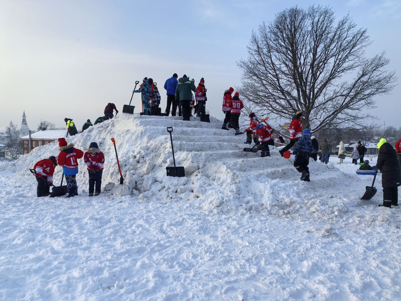 На Дороге к Храму развернулась настоящая зимняя стройка —создание снежной горки, которая станет любимым местом отдыха для детей и взрослых.