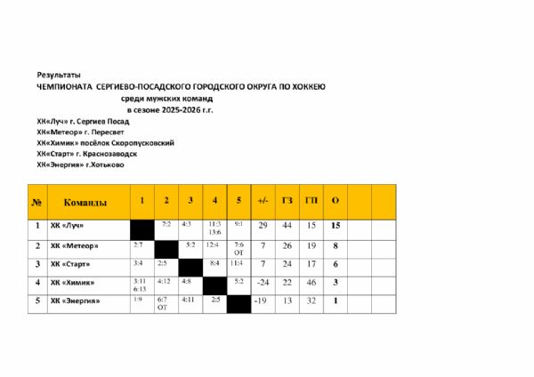 Результаты ЧЕМПИОНАТА СЕРГИЕВО-ПОСАДСКОГО ГОРОДСКОГО ОКРУГА ПО ХОККЕЮ среди мужских команд
