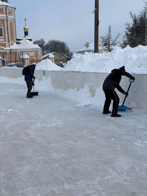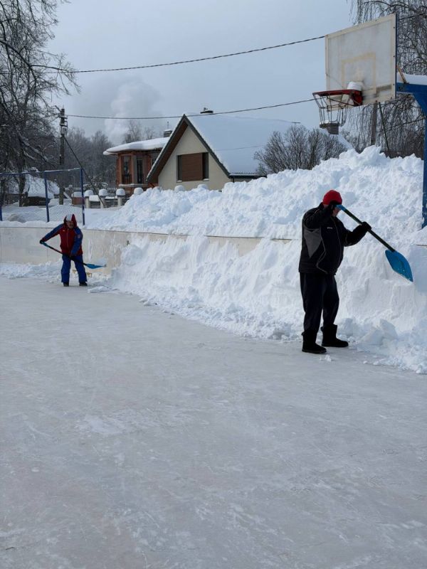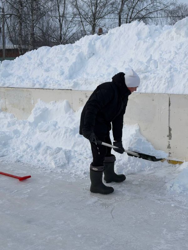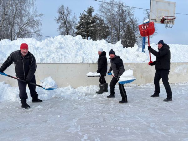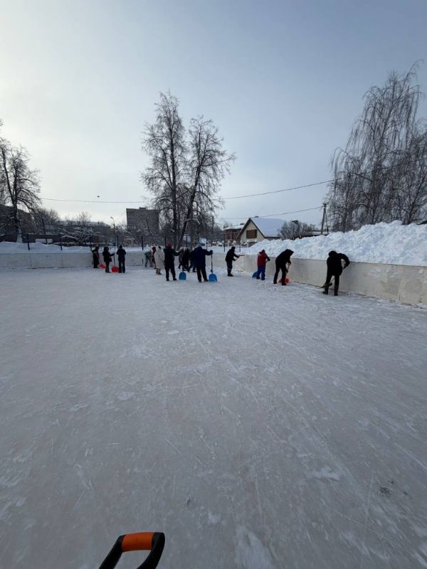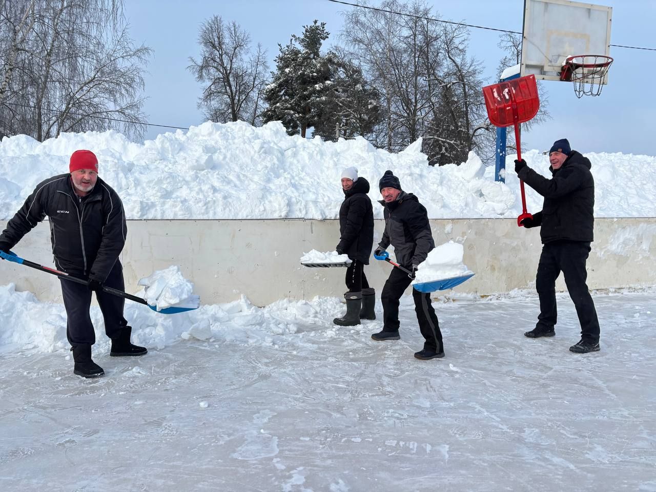 В субботу, очистив территорию ледового комплекса от снега, наш коллектив не мог не помочь сотрудникам СШ «Центр» убрать снег на хоккейной площадке, подготовив лёд для катаний жителям Клементьевского посёлка.