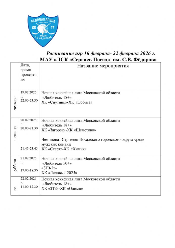 расписание хоккейных матчей 19 февраля-22 февраля 2026 г.